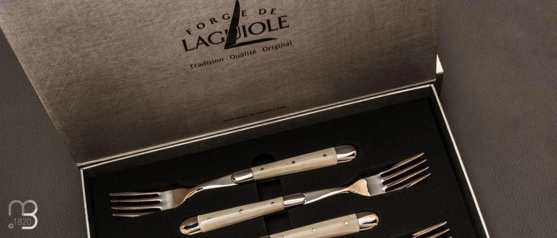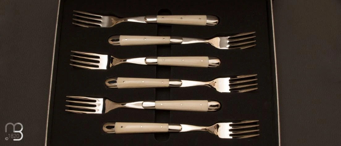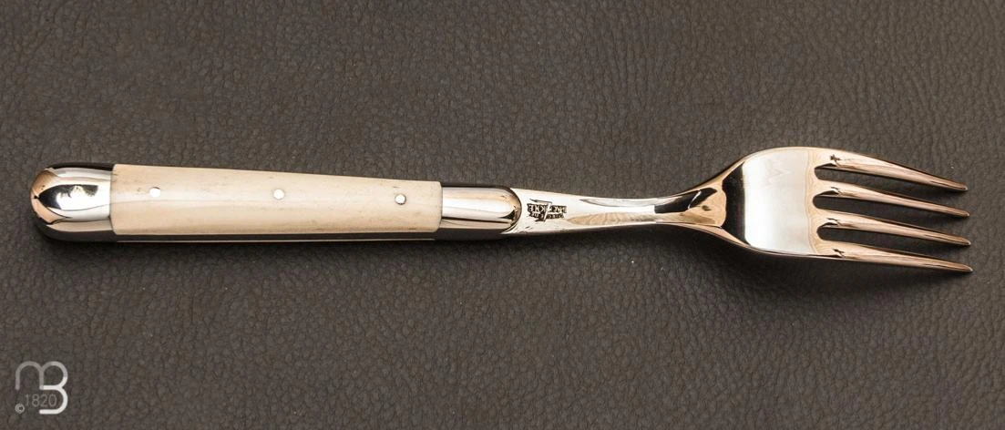 Manches en os, avec mitres en acier inoxydable brillante.