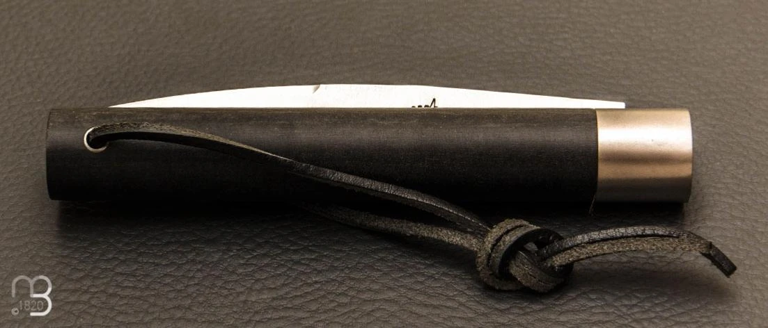 Manche en fibre végétale composite noire avec lacet en cuir.