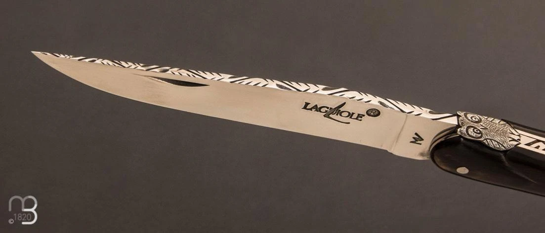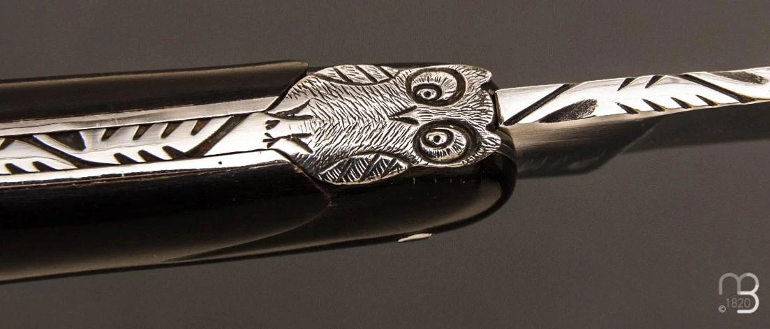 Sur ce modèle la mouche a été remplacée par une chouette entièrement gravé.