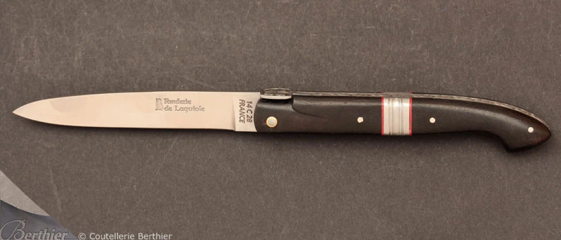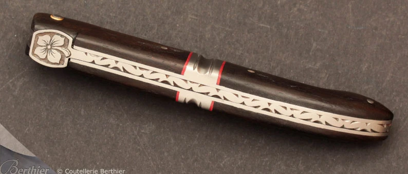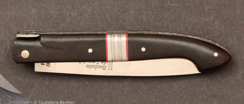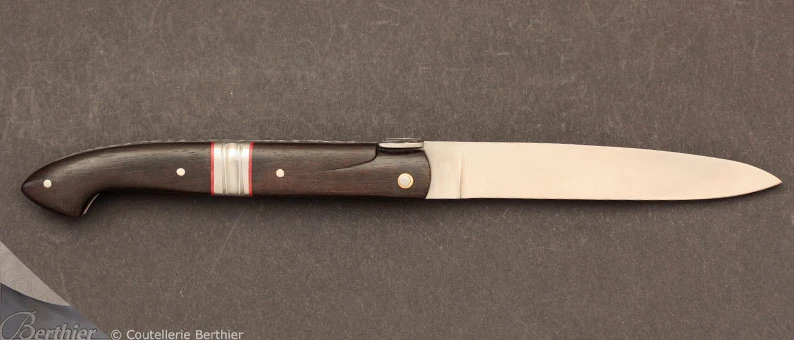 Manche en ébène avec mitrescentrales en acier inoxydable.