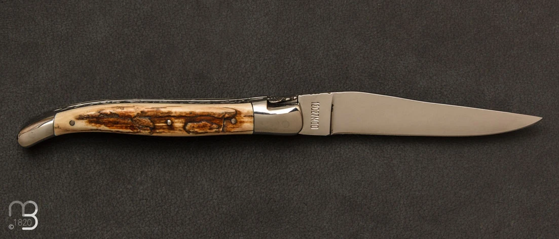 Lame avec onglet et ressort à mouche forgée guillochés.