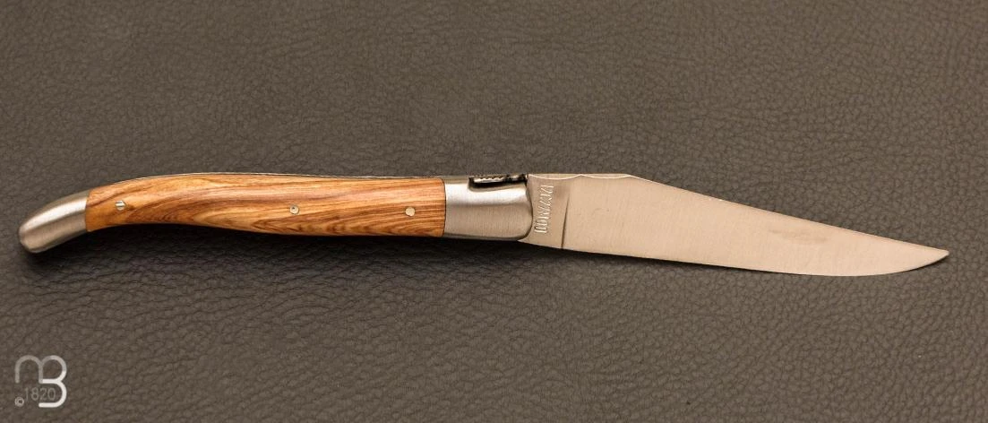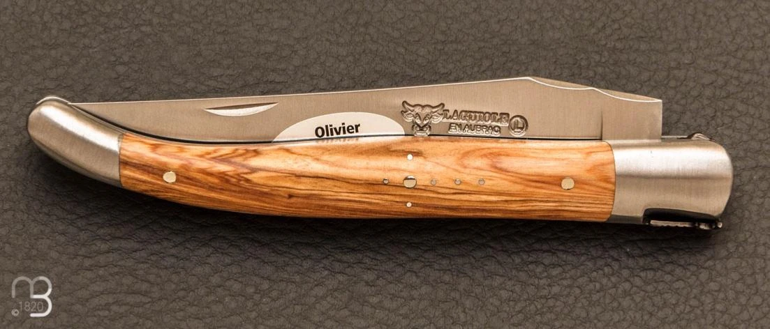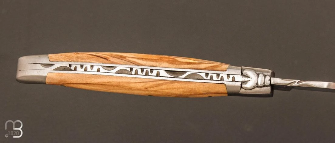 Lame avec onglet et ressort à mouche forgée guillochés.
