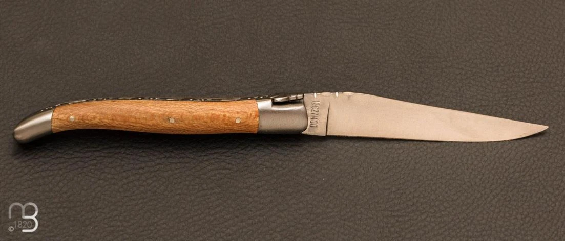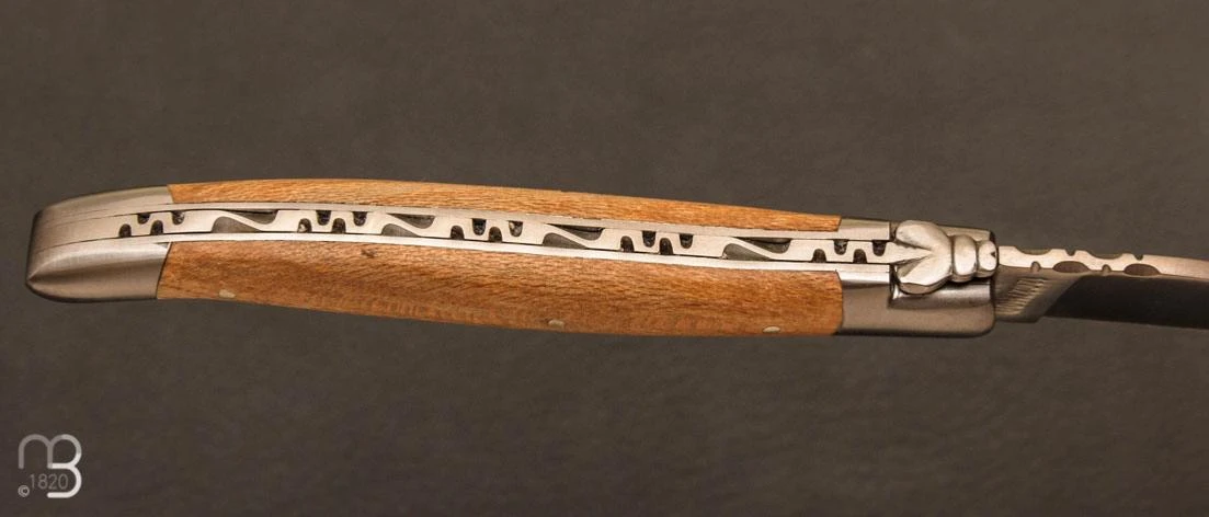 Lame avec onglet et ressort à mouche forgée guillochés.