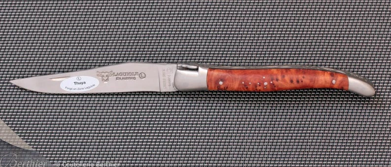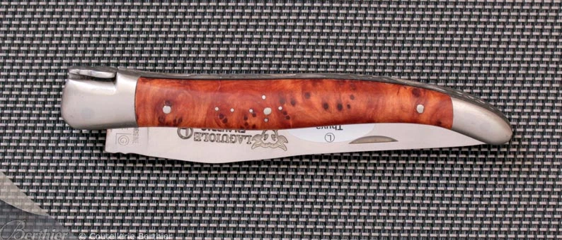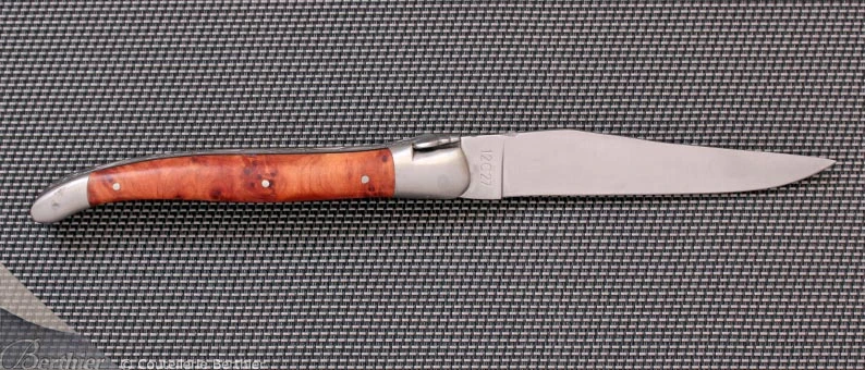 Lame avec onglet et ressort à mouche forgée guillochés.