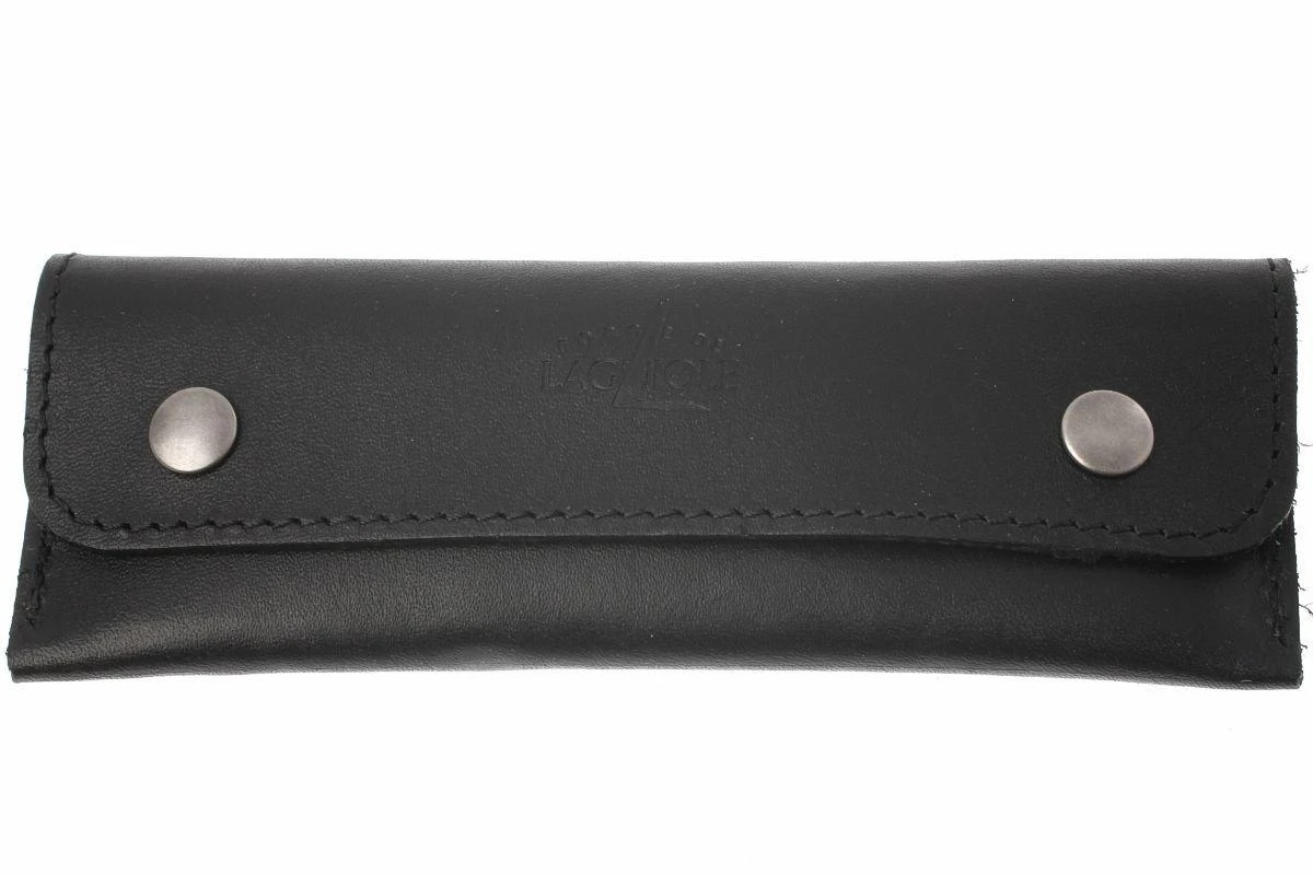 Cet étui Forge de Laguiole est un petit sac en cuir compact pour votre couteau sommelier Laguiole. L’étui est en cuir noir élégant et se ferme à l’aide de boutons pression.