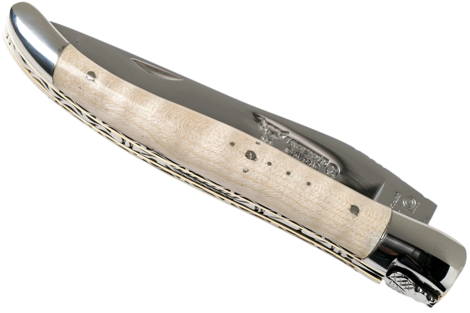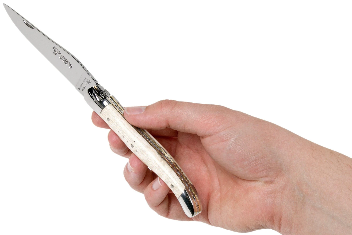 Ce couteau de poche Laguiole en Aubrac 12cm respire l’élégance. Chaque couteau de poche est fabriqué à la main pour garantir une finition des plus incroyables. Ce couteau est doté de doubles platines ce qui offre encore plus de place pour les décorations ! Le dos de la lame, le ressort et les doublures sont richement décorées. Le dos de la lame présente également les caractéristiques Laguiole. Toutes ces finitions sont faites à la mains dans les ateliers Laguiole en Aubrac situés en Aubrac. La lame est en acier Sandvik 12C27MOD, résistant à la corrosion. Les mitres et la lame sont polies pour un aspect encore plus luxueux. Le manche présente la croix du berger typique des couteaux Laguiole.